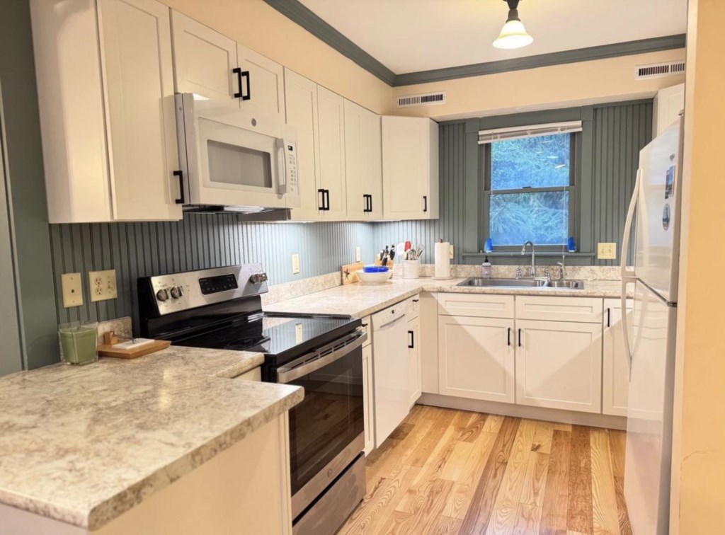 Enjoy privacy and proximity to the beach with this newly updated, beautiful cottage in Ocean Park, ME. Lovingly named Seaside, this unique, two family home is nestled in a grove of evergreen trees, just one block from the ocean. With 4 bedrooms and 2 full bathrooms, the cottage provides the perfect setup for a large family vacation at the beach. With central AC and nest thermostats, two, large screened in porches, a second floor balcony with an ocean view, a modern kitchen on the first floor and kitchenette on the second floor, new washer and dryer, outdoor grill, and large wooded backyard, this cottage has everything you need for a comfortable stay at the beach. You even have room for the in-laws! There is also a pull out couch in the upstairs family room, making sleeping accommodations possible for up to 8 people. Don’t miss out on this cozy, hidden, Seaside gem. Bedroom 1: 2 twin beds Bedroom 2: 1 king bed Bedroom 3: 1 full bed Bedroom 4: 2 twin beds Upstairs Den: Pullout sofa double 2026 Rate: $5000/week plus tax. Early June is $3500/week plus tax. For booking please email Chris@Oceanparkrealty.com